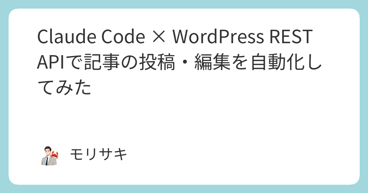 WordPress REST APIを使えば、Claude Codeから記事の作成・編集・公開が直接できます。実際にやったことを挙げると: