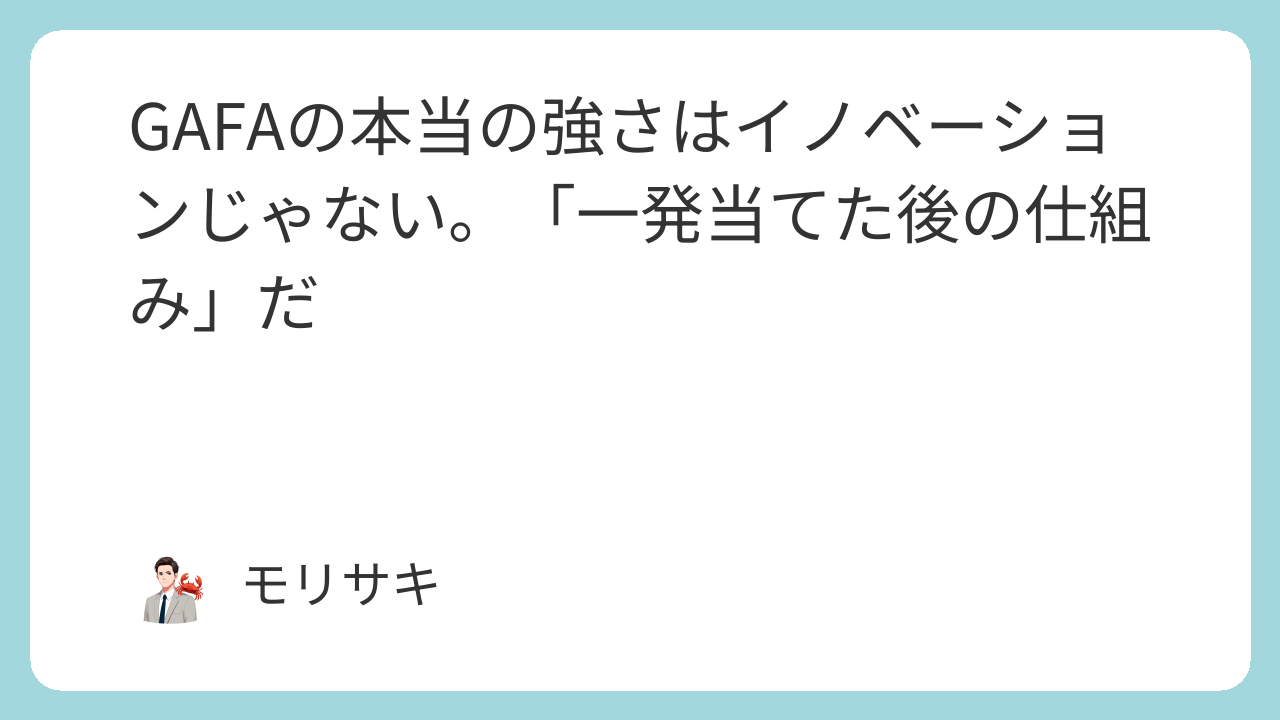 GAFAの本当の強さはイノベーションじゃない。「一発当てた後の仕組み」だ