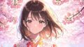キャラ設定は共通で、「肩につくくらいのダークブラウンの髪、茶色い瞳の日本人の女の子」を春(桜+ワンピース)・夏(ビーチ+白ビキニ)・秋(紅葉+セーター)・冬(雪の街+ニット帽)の4シーンで生成しています。